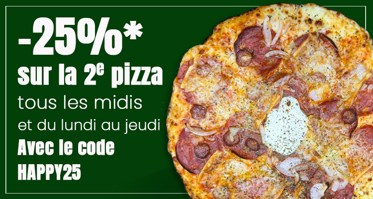 CAMPIONE : Sauce tomate maison, mozzarella 100 %, steak haché, tomates cerises, oignons, olives, comté (halal).