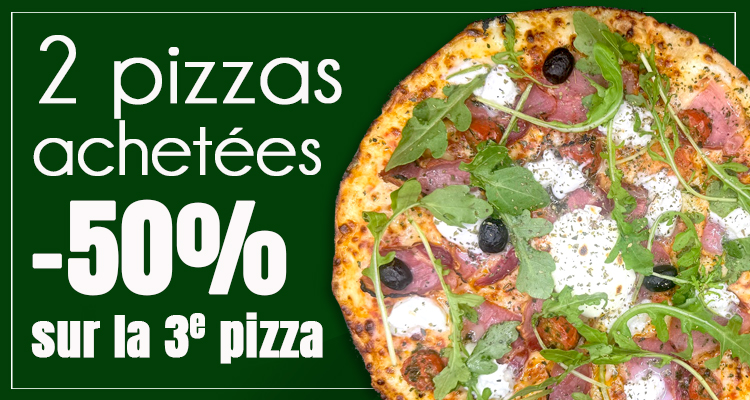 ITALIENNE : Sauce tomate maison, mozzarella 100 %, jambon cru, olives, tomates cerises, roquette, Comté AOC, origan.