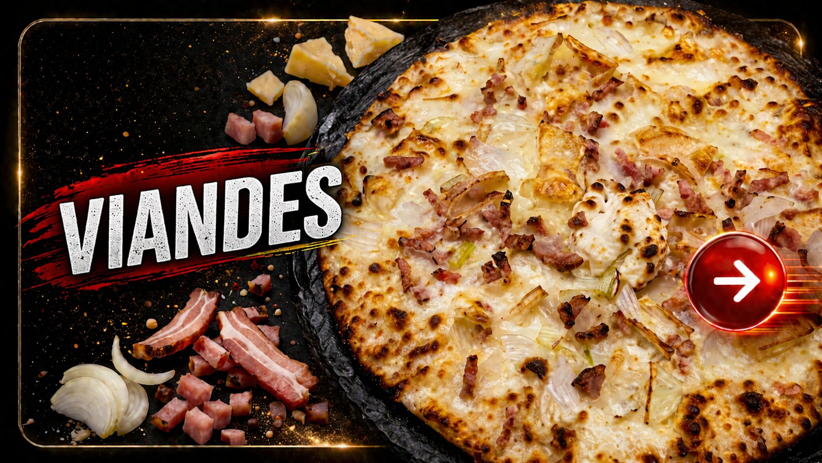 TARTIFLETTE : Crème fraîche, mozzarella 100%, double oignons, lardon, pommes de terre, reblochon